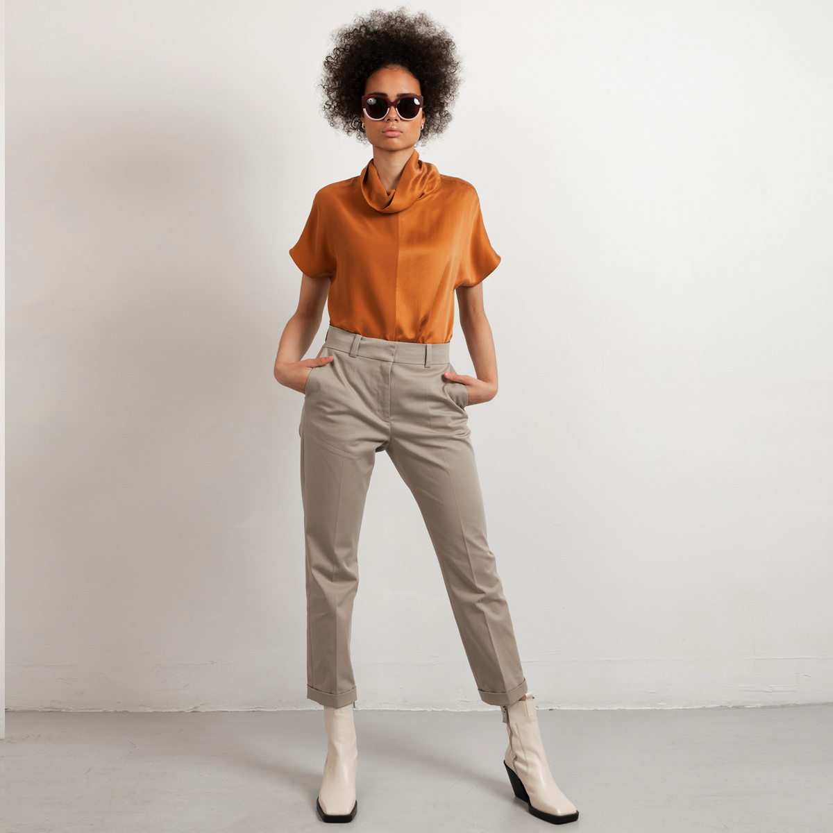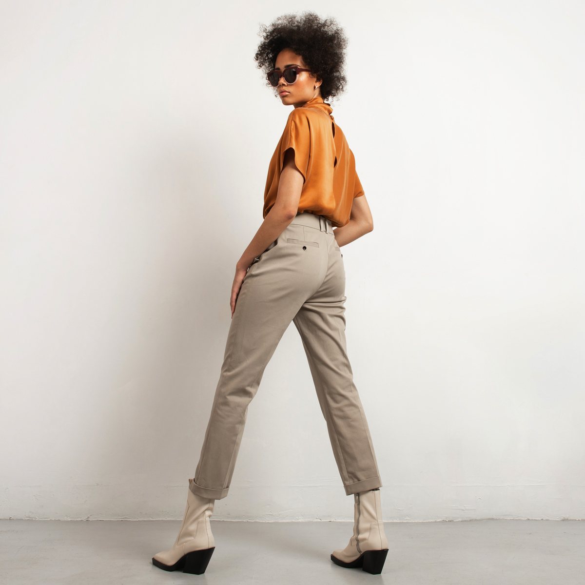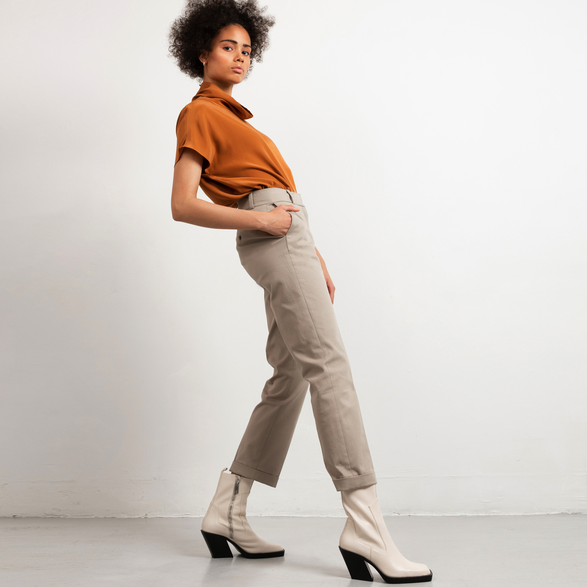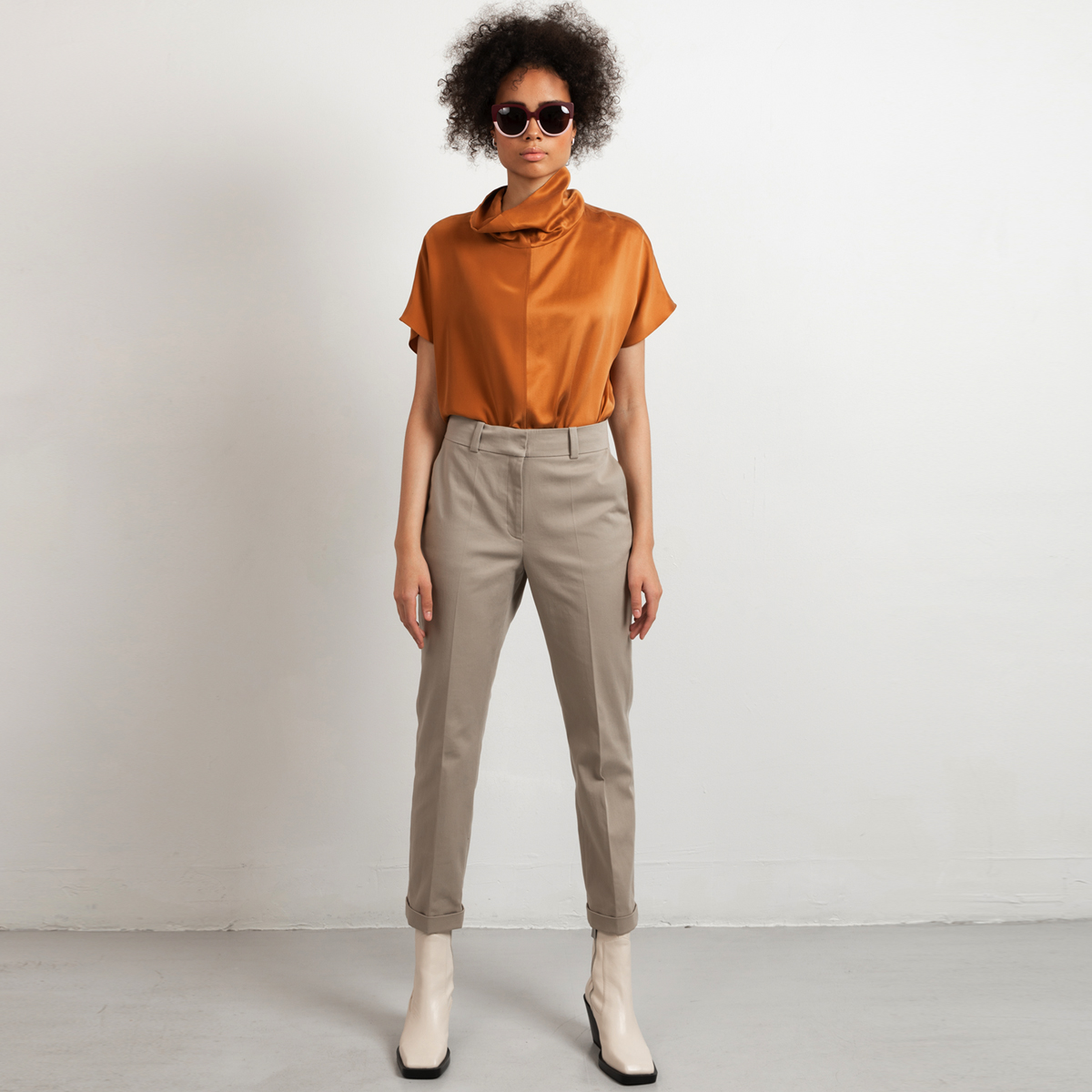 Introducing the perfect cotton-stretch pants with a straight leg and higher waist. The modern shade of greige makes these pants a key-items in your capsule wardrobe. Style the suit pants with white sneakers for a casual approach, or style with heeled ankle boots to prolong your legs. Furthermore, match with a silk blouse for feminine elegance or with a simple tee and sandals during working days.