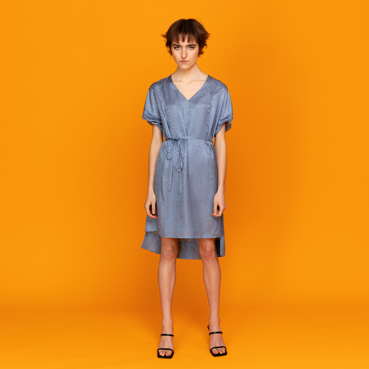 With it’s simple but modern shape it’s a must-have in everyones wardrobe. Wear as tunica without belt and with mules or sneakers for a casual day look. For nights and parties tie the belt, put on on heels and you are good to go.