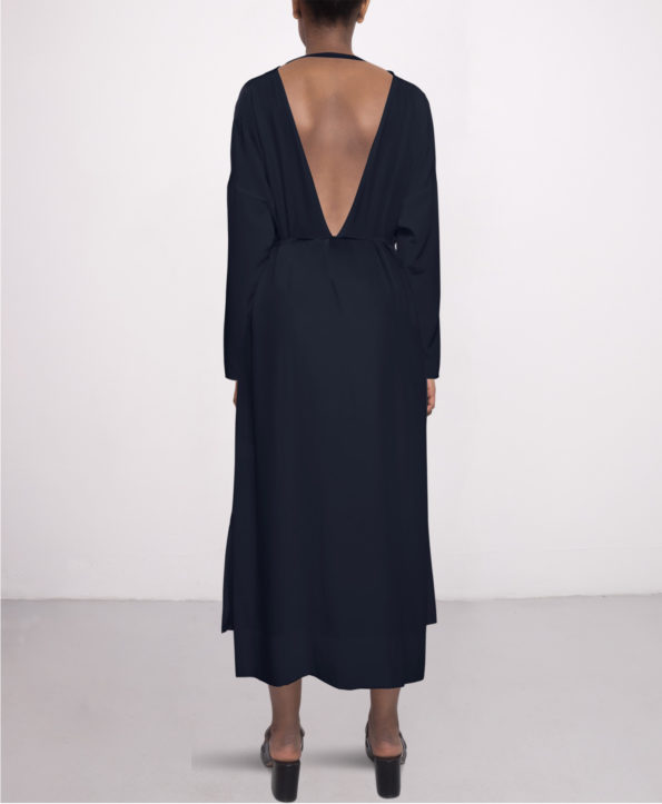 Be the first to review “Long day silk dress in Navy blue LS RN”