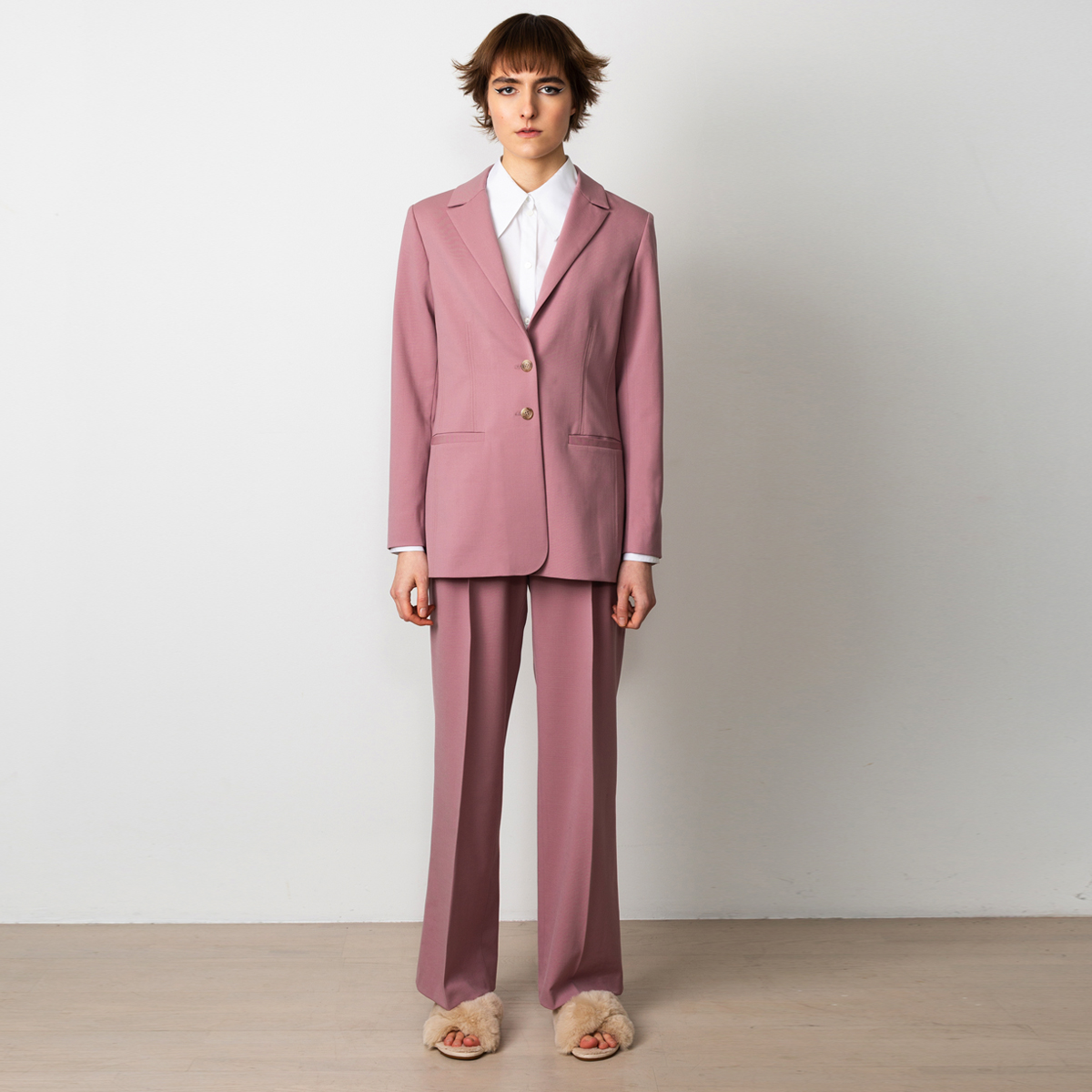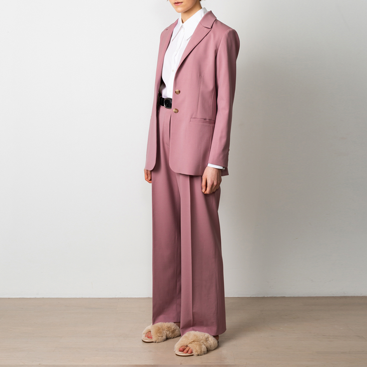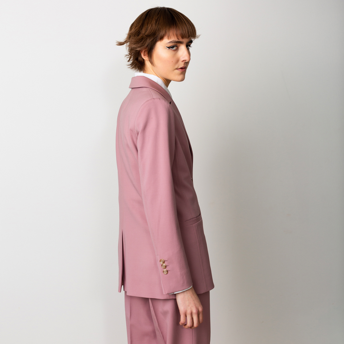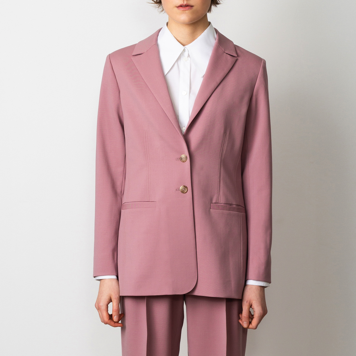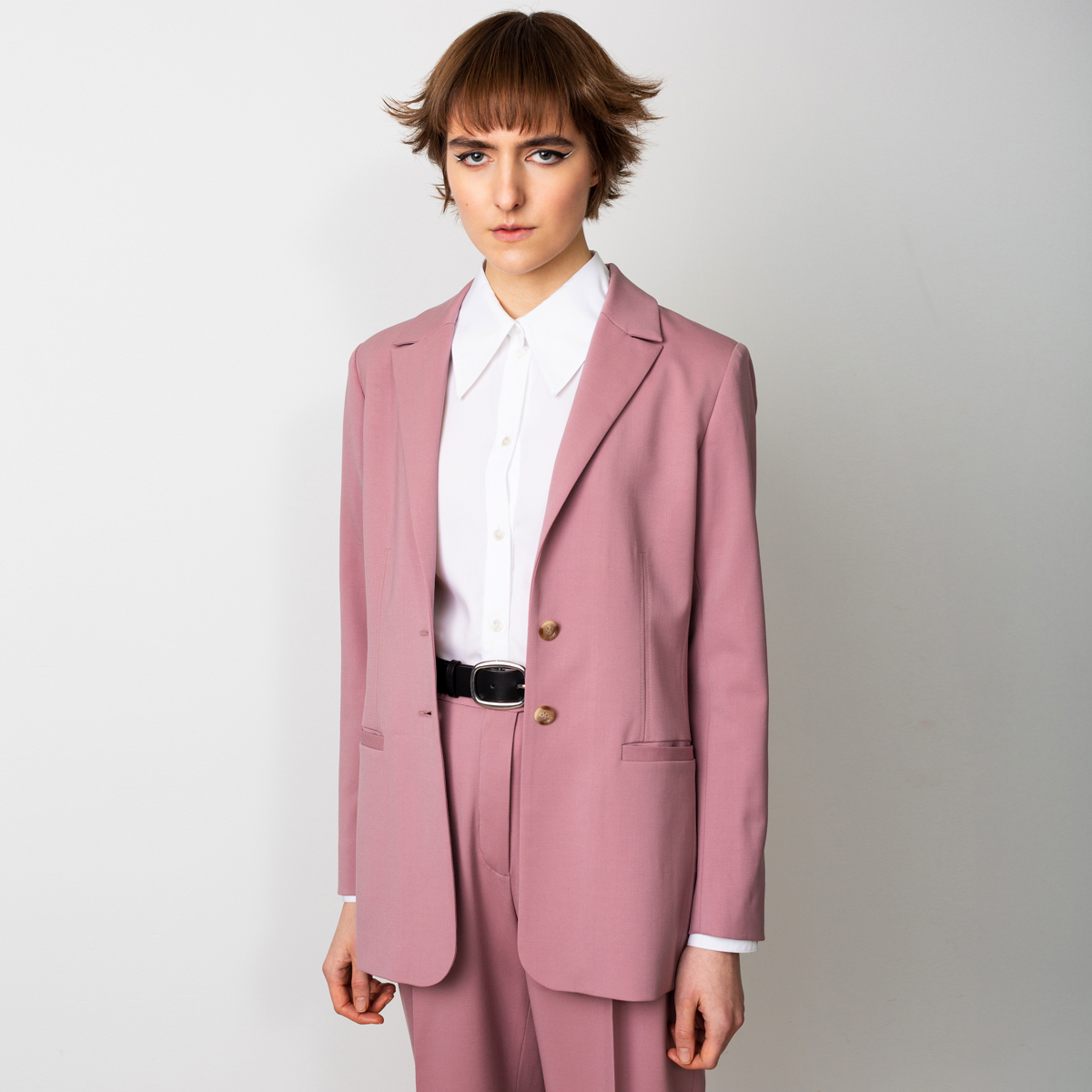 Grace wool blazer is our take on the perfect every day blazer. The newest version comes in a lovely dusty pink colour. Wear the pink blazer with wide trousers Swipeas in the pictures or with pink tapered pants, as a part of a relaxed power suit, or as a separate blazer over any outfit.