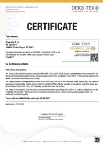 OEKO-TEX STANDARD 100: Certificate that ensures that every component of the product, including thread, textile and buttons, has been tested for harmful substances.