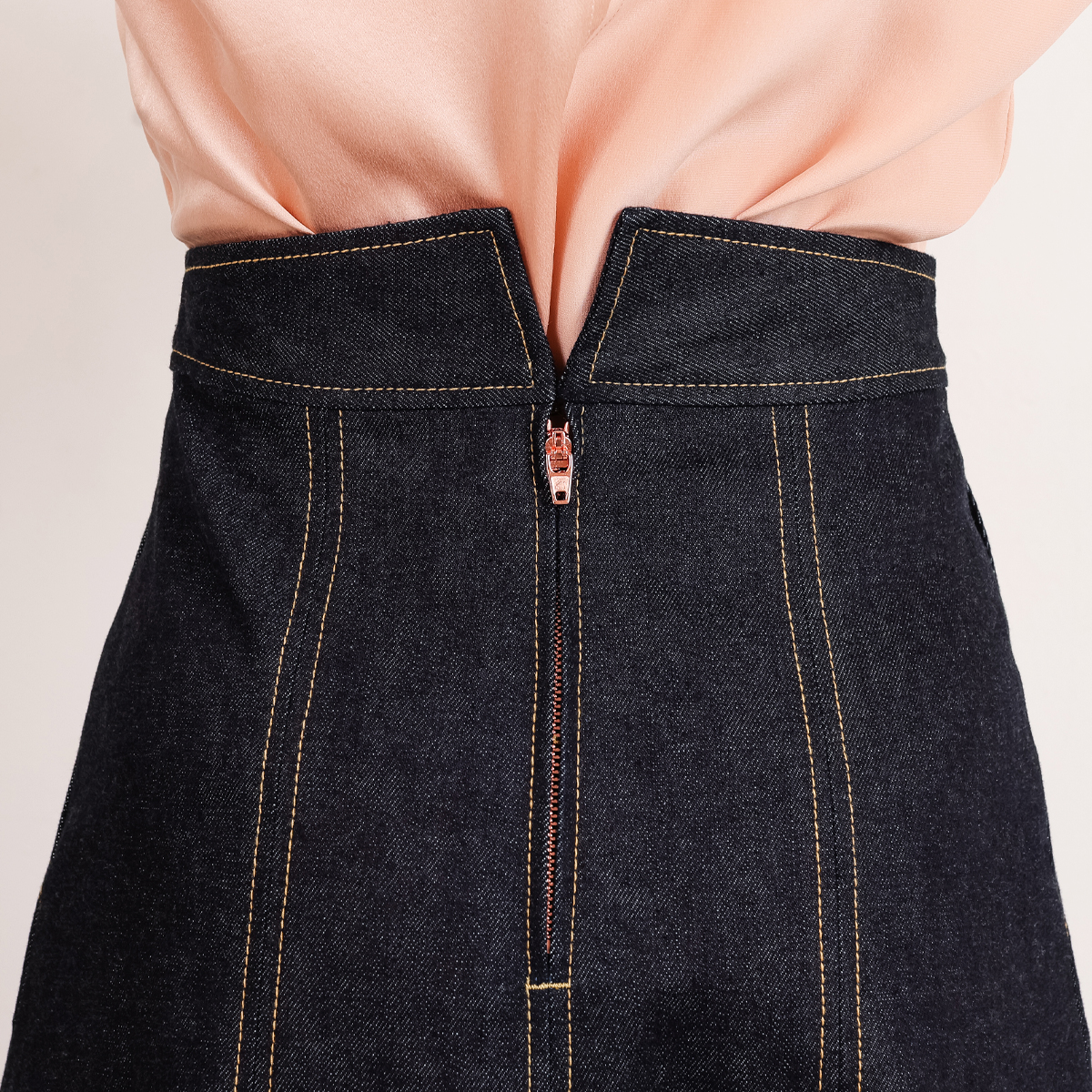 For skirt length: Place the tape on your earlier defined waist. Hold the tape on your knee and secure the tape with one hand. Bend forward and measure to the length desired. Measure from your waist (earlier defined) to length desired. For asymmetrical skirts measure to the shortest part of the skirt.