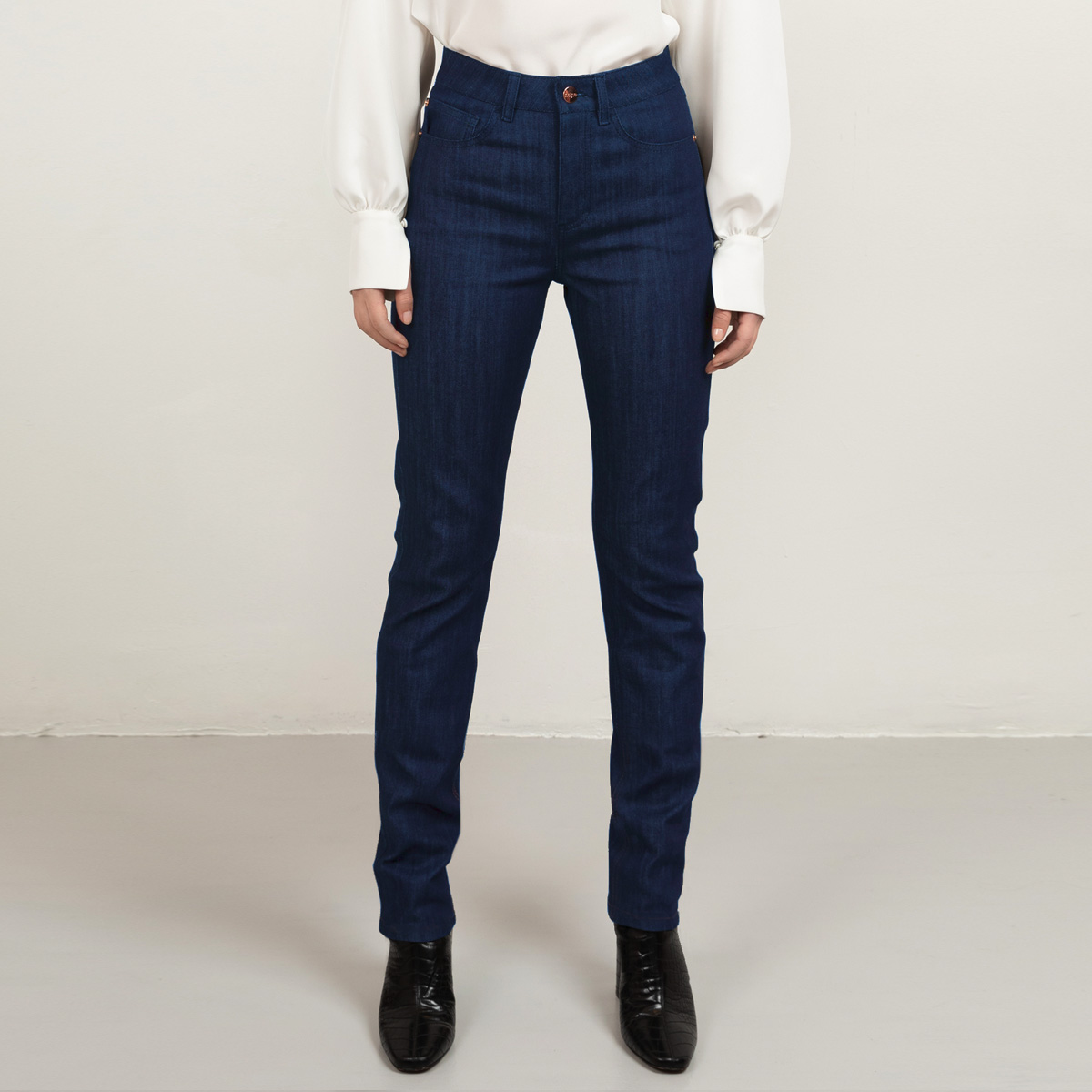 Our denim is carefully developed to become your perfect everyday jeans. It has a straight leg and higher waist than regular jeans. The fit is very flattering; we have especially focused on the curvy parts. Additionally, the denim fabric has a light stretch that makes them extra comfortable.