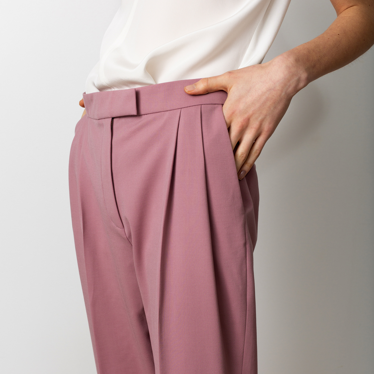 Flattering pleated trouser with a high waist and tapered shape. Now in new colour dusty pink.