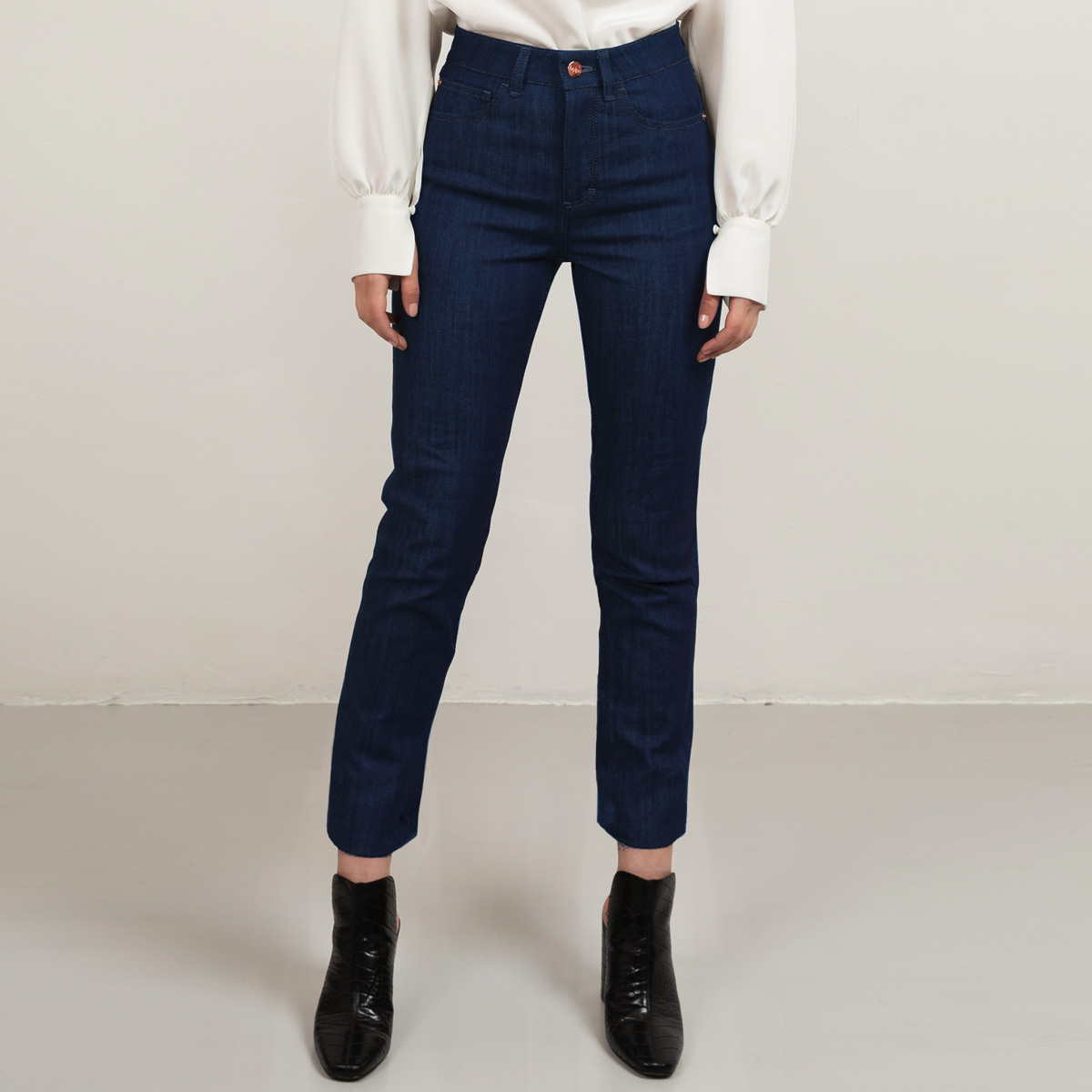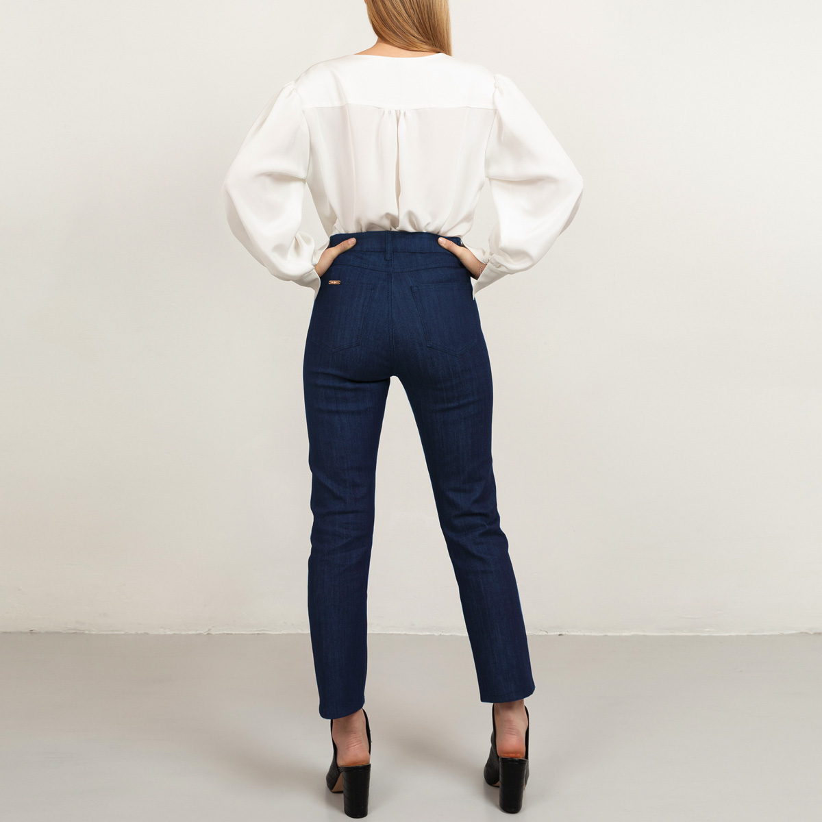 Our denim is carefully developed to become your perfect everyday jeans. It has a straight leg and higher waist than regular jeans. The fit is very flattering; we have especially focused on the curvy parts. Additionally, the denim fabric has a light stretch that makes them extra comfortable.