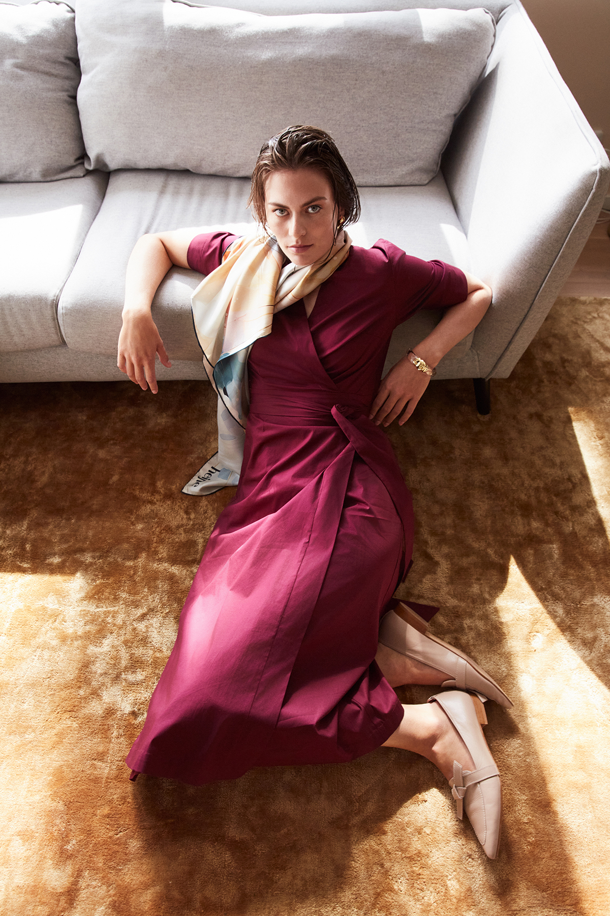 The deep wine-red color adds sophistication and confidence, making it ideal for various events, from dinners to day-to-night transitions. You can style this stunning dress in many ways: pair it with flats and statement jewelry for a formal look , or with our Silk Scarf Umbrellas for a more casual, modern outfit.