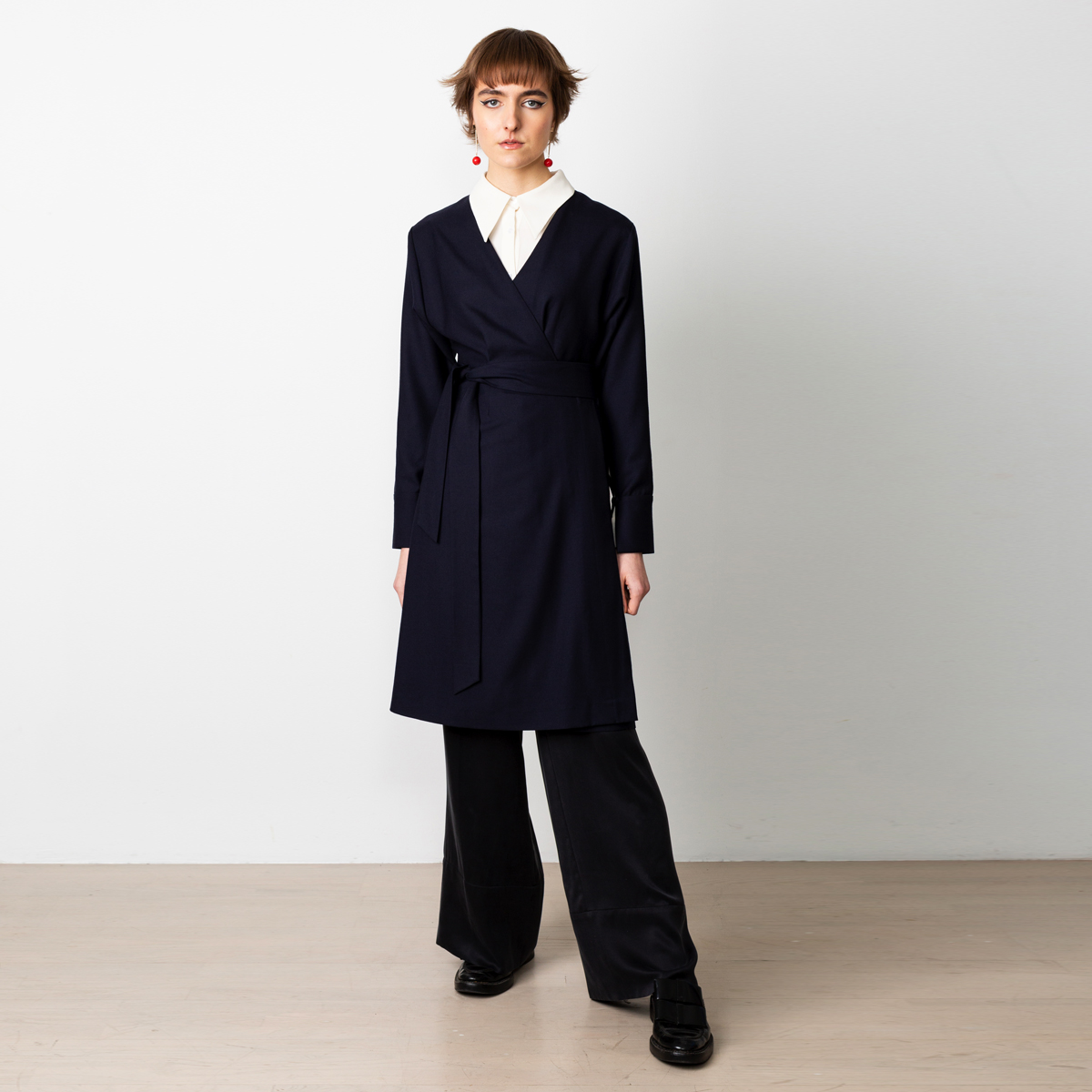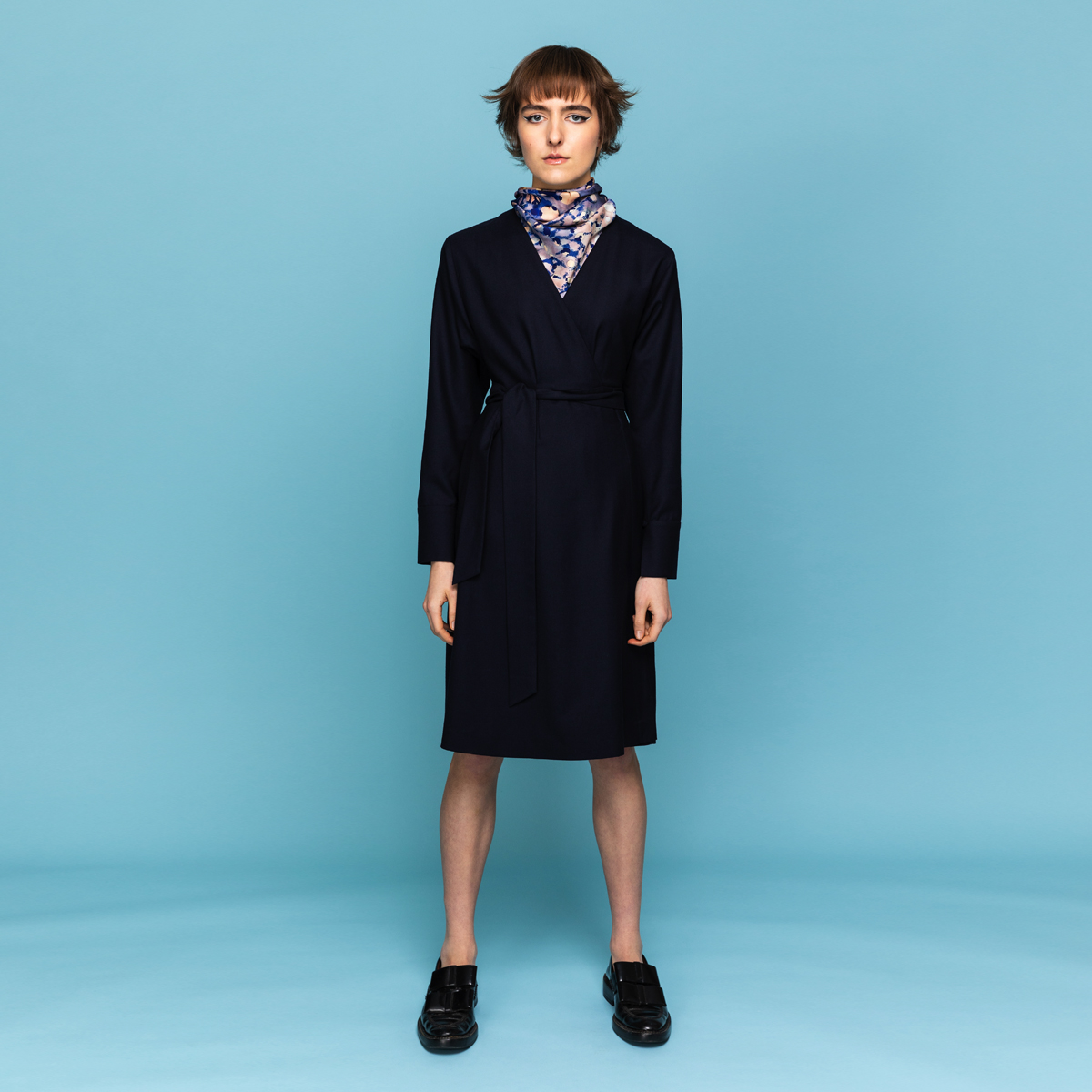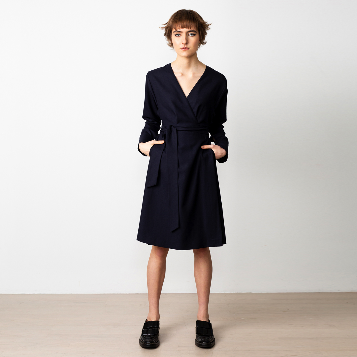 Be the first to review “Wrap dress in navy wool” Cancel reply