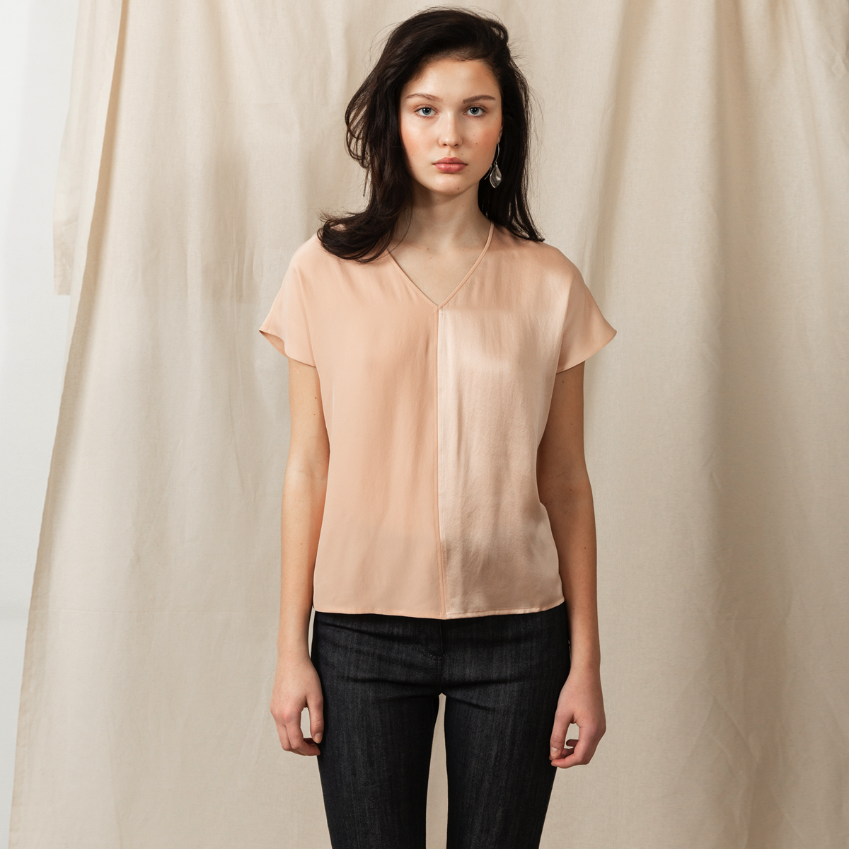 Made-to-measure V-neck silk tee