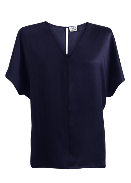 Revolution top is our popular custom-fit silk top. This basic, but sophisticated navy blue top is suitable for any and every occasion and can be paired with any garment because of its versatility. The vertical seam down the centerline gives a subtle and interesting detail. Made of silk satin that gives a toned downed glisten to the garment, therefore suitable for casual days or nights out. Easy care: Washable in the washing machine.