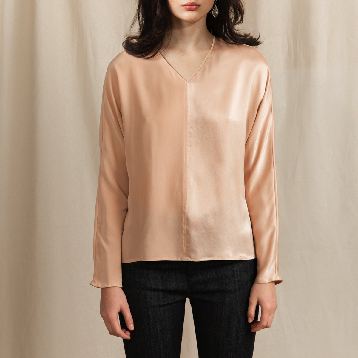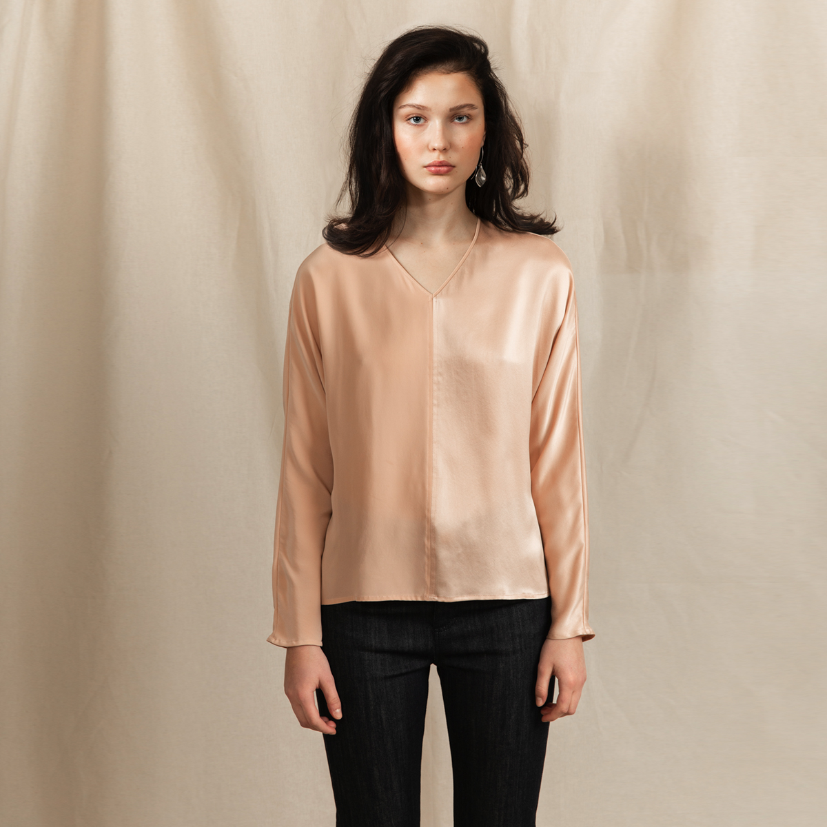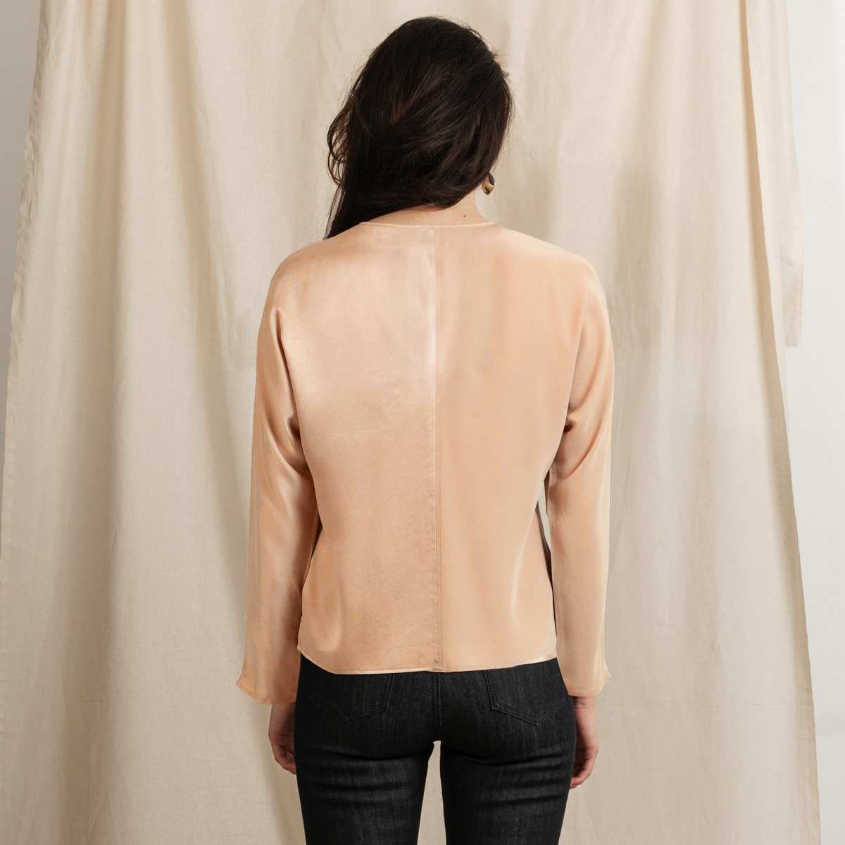 Introducing our stunning silk top in a beautiful shade of light pink – the perfect addition to your wardrobe for any occasion. Crafted from luxurious silk, this top is soft, lightweight and incredibly comfortable to wear.
