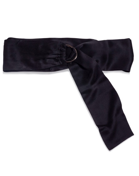 Long black silk belt which can be wrapped twice around your waist. The belt adds the perfect accent to your outfit. We like it especially used as contrast color accent to your outfit. Wear it with your dress or over you blazer/top for example to emphasize your waist. The D-ring makes a solid closure. The length of the belt is almost 2 meter and therefor it fits all sizes.