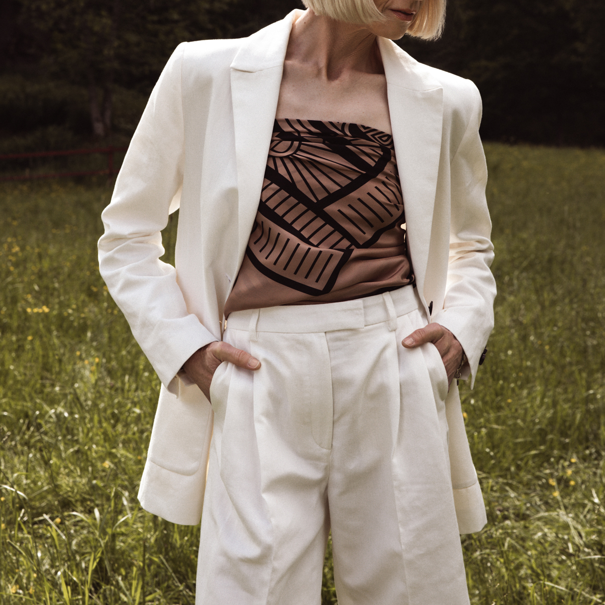 Style these trousers with sandals and match together with blazer Grace in the same fabric for the a modern office look.