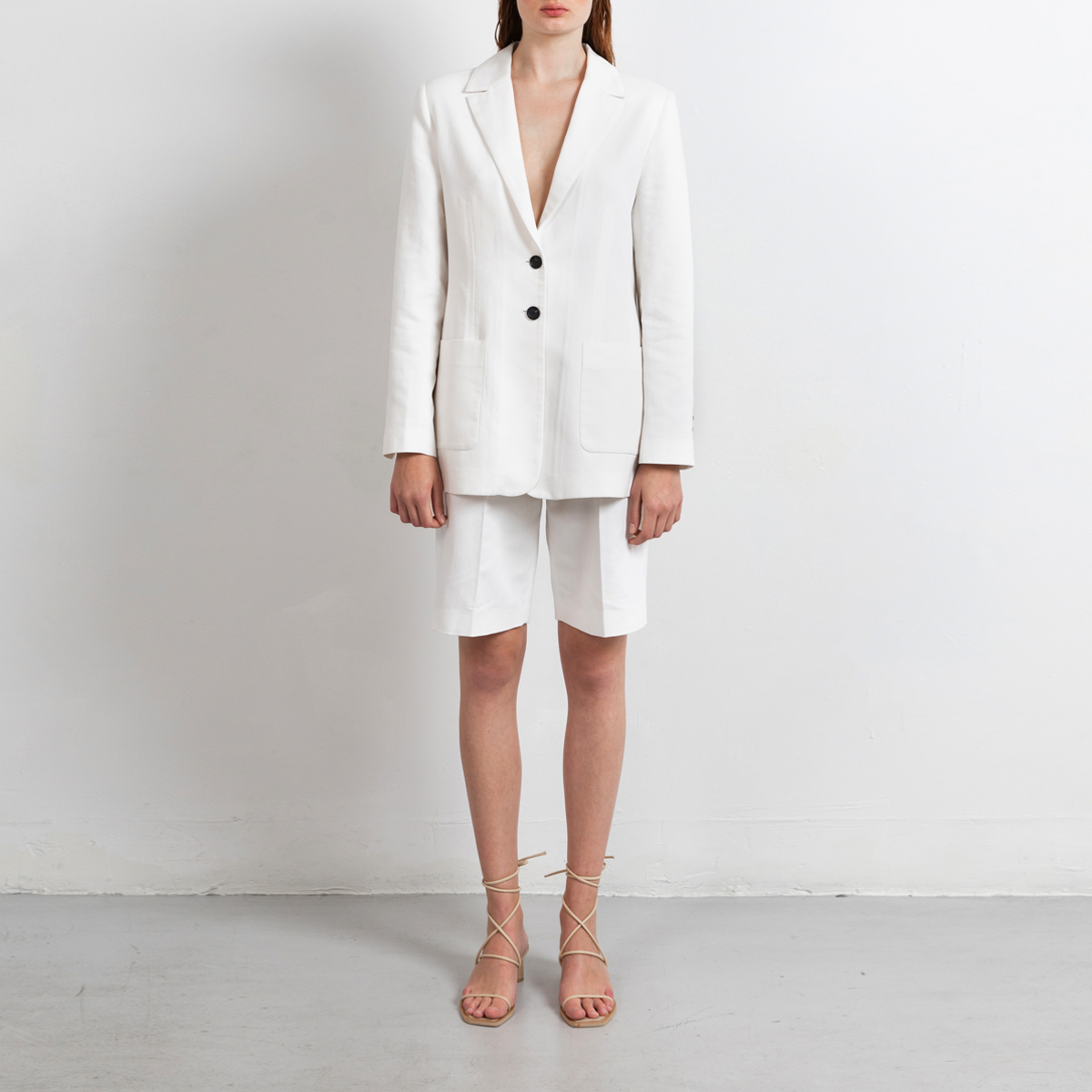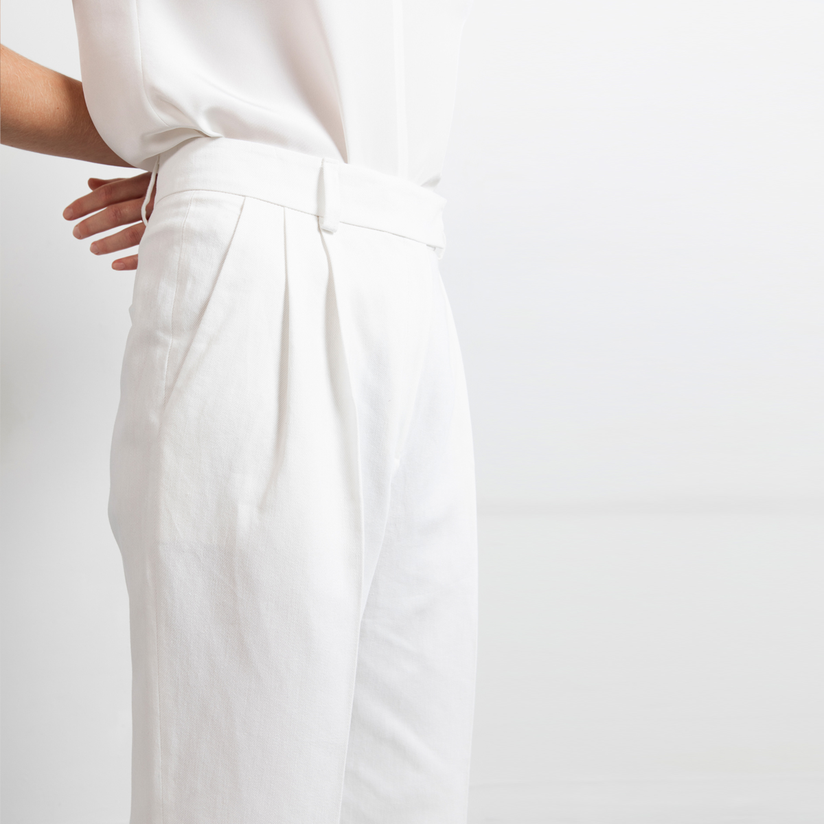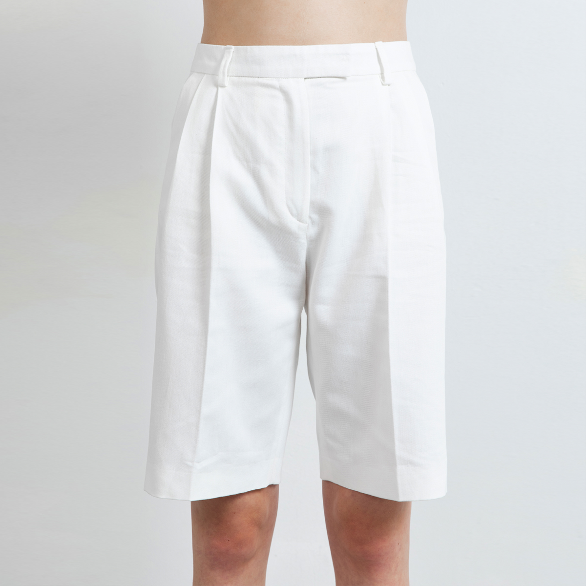Swipe shorts is our new semi dressed wide leg shorts and are perfect to create a spring or summer well dressed urban look. These shorts are crafted in a soft yet sturdy cotton/linen/lyocell mix. The fabric is undyed and therefore 100% natural white. Swipe has pleats on the fronts for sharp but relaxed look. The pockets lining is designed to have minimun see through effect at the pockets.