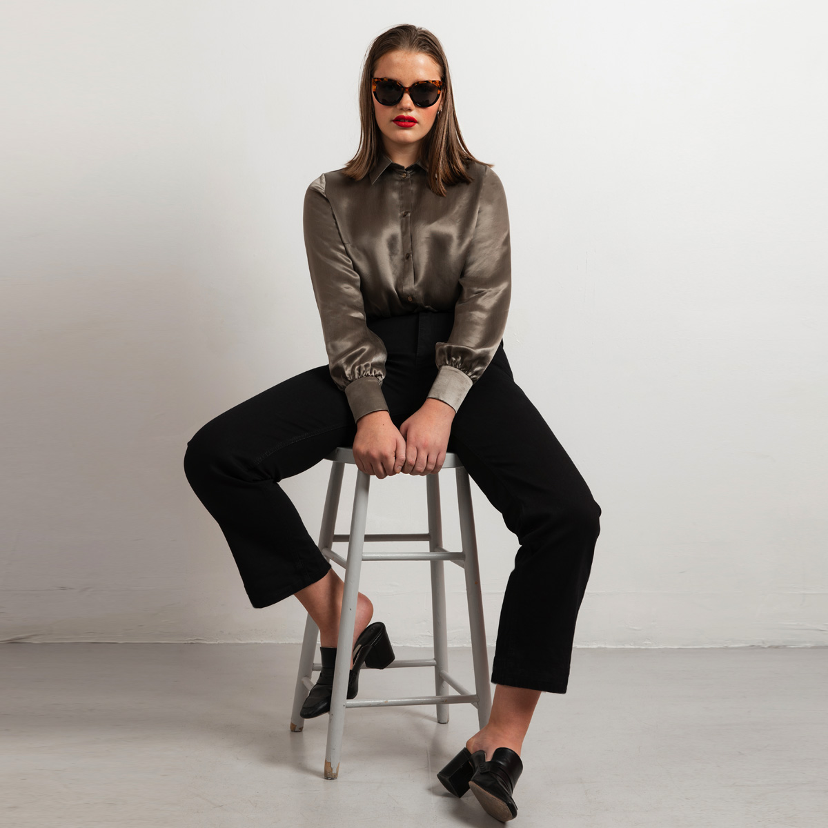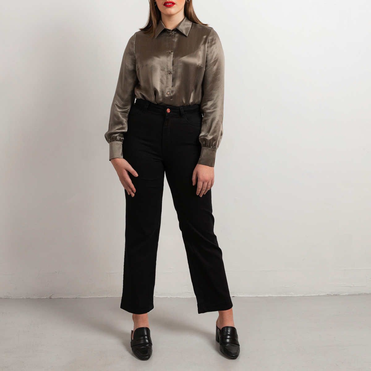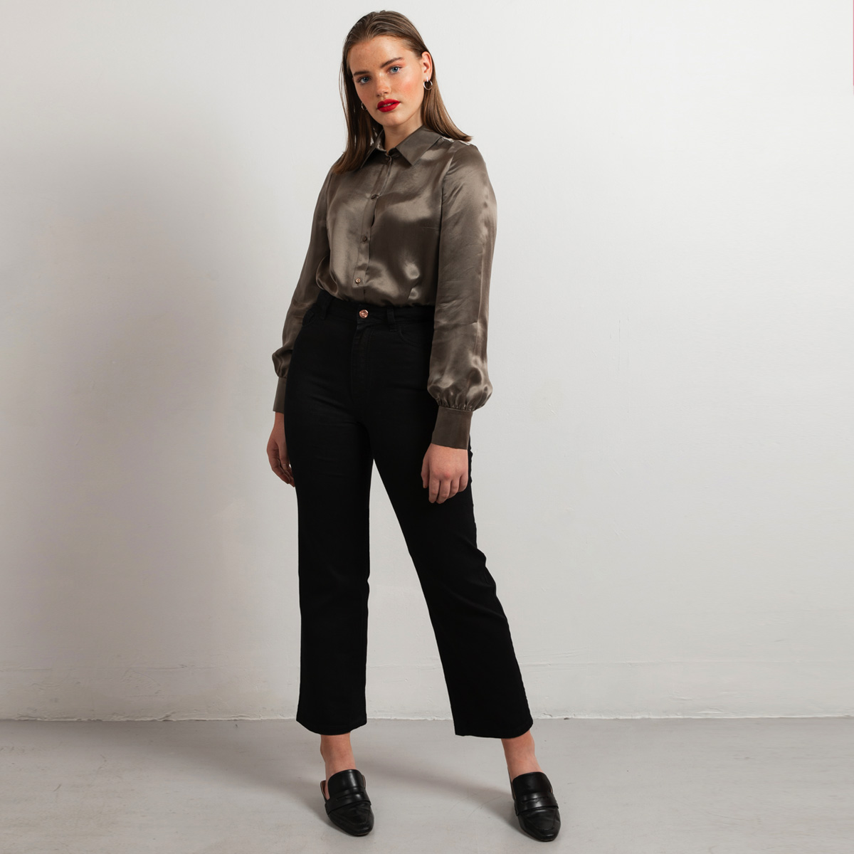 Style wide leg jeans with ankle boots and match together with Blazer Grace for the a modern office look.